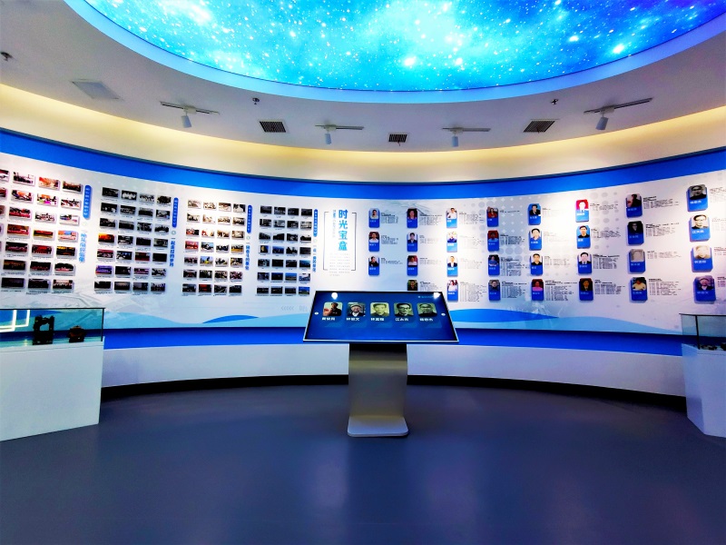 弧形墻體展示設(shè)計(jì),展示的是水科院的人物風(fēng)采、歷史變遷,創(chuàng)造出一種一覽無余的視覺效果,并給人環(huán)抱感。