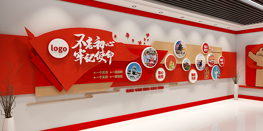 黨誓廳:黨誓廳主要展現(xiàn)黨的全新精神,黨組織的主要概述、黨的組織工作做好情況、獲得的成效這些。以展板圖版為主導(dǎo),融合功能需要做好設(shè)計(jì)。