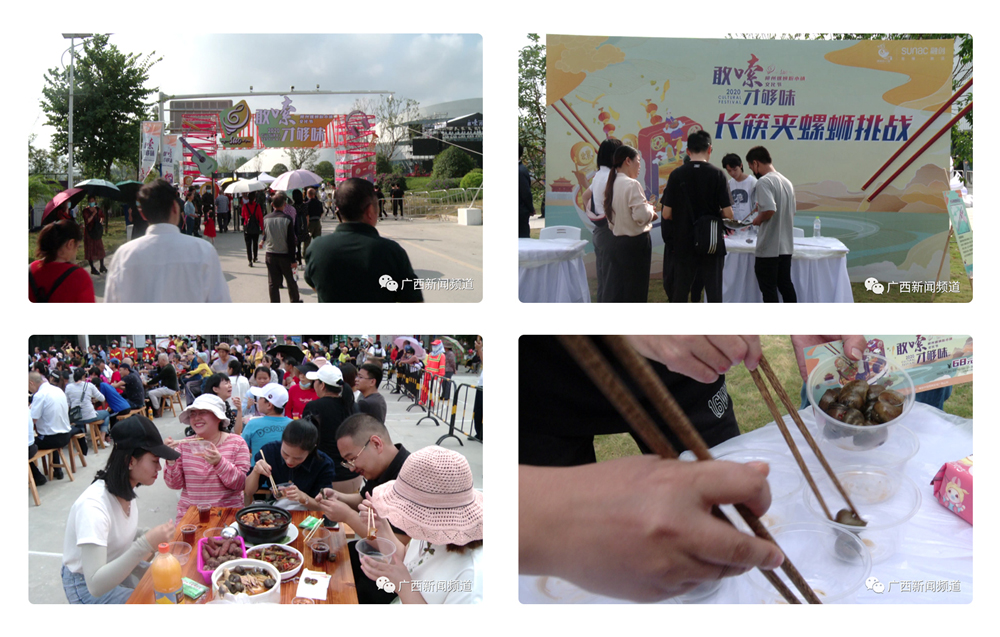 螺螄粉小鎮(zhèn)是柳州市重點(diǎn)打造的文旅和螺螄粉產(chǎn)業(yè)項(xiàng)目。11月21日, 2020第三屆螺螄粉小鎮(zhèn)文化節(jié)開(kāi)幕了,那今年的文化節(jié)都有什么好吃的和好玩的呢?今年的螺螄粉小鎮(zhèn)文化節(jié),除了傳統(tǒng)的螺螄粉集市以及螺螄粉品嘗區(qū)域以外,還增設(shè)了螺友競(jìng)技項(xiàng)目——涂鴉墻、長(zhǎng)筷夾螺螄挑戰(zhàn)、嗦螺螄比賽等,吸引了不少市民參加。而整個(gè)文化節(jié)中,吃貨們最期待的恐怕要數(shù)百螺宴了。