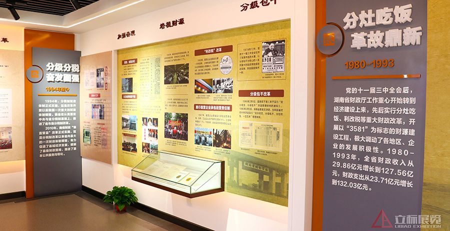 湖南省財(cái)政廳歷史陳列館是一個湖南省財(cái)政歷史的象征和文化建設(shè)的重要標(biāo)志,是展示歷史、文化傳承的重要窗口。 展館主要以現(xiàn)代電子觸摸屏與傳統(tǒng)圖文展板相結(jié)合,配以部分有歷史感的實(shí)物,回顧省財(cái)政廳的風(fēng)雨歷程,展示財(cái)政工作對湖南經(jīng)濟(jì)社會發(fā)展所發(fā)揮的宏觀調(diào)控、政策保障和資金支持作用以及財(cái)稅文化的深厚底蘊(yùn)。綜合采用實(shí)物、圖片、文字、觸摸屏手段等方式展現(xiàn),按照“內(nèi)容實(shí)事求是、文字準(zhǔn)確精煉、設(shè)計(jì)前瞻新穎、布展美觀大方、通盤留有余地”思路進(jìn)行。